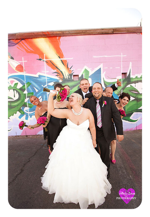 Eddie and Heather came to Las Vegas from the Toronto Canada area. It is fitting that they met each other at a Toronto Blue Jays baseball game. I had the pleasure of meeting them last year when we did their engagements. It was great to get to hang out with them again and to meet their amazing friends and family. The ceremony was at Caesars but Heather wanted something a little different than photos on the strip. I’m all for different. After the ceremony the bridal party hoped in the Limo and we went to Rumor Boutique Hotel for some romantic’s with just Eddie and Heather. Then we headed to the art district for some fun shots with the whole bridal party. It was hot but we all made it. Note to future summer couples please buy water and not just alcohol. Yes alcohol can be fun but water is necessary in Las Vegas 😉 After the fun with the bridal party we headed to Joe’s for an amazing dinner with dancing and fun. Heather great job on putting this all together your hard work and effort really paid off! Heather and Eddie you have such an amazing family. We are so happy for you.