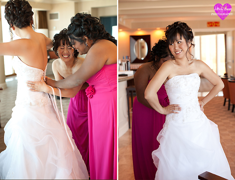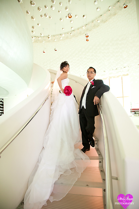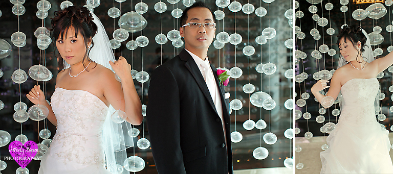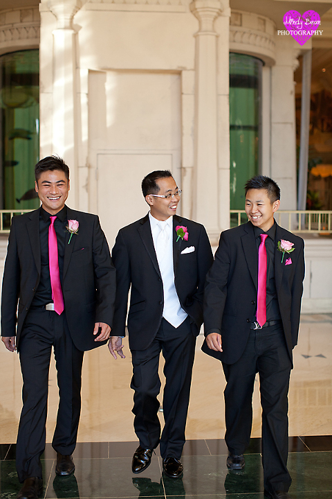 Hey all, here is the follow up to Keith and Rowena’s engagements. I can’t think of a better way to follow up such fun engagement pictures with than showing off their amazing wedding photographs. I know I say it over and over but I love when I get to take engagements before the wedding it just makes everything so much better on the wedding day. If you missed their engagements check them out here. They said their I Do’s at the Mandalay Bay and we had a blast taking photos in there. Then we went to Mix Restaurant for some photos before their meal there. You will notice once we got the bridal party together for photos we had a blast. Rowena was absolutely gorgeous and the dress needs just one adjective STUNNING! Enjoy your wedding sneak peek you two and I can’t wait to show you the rest!