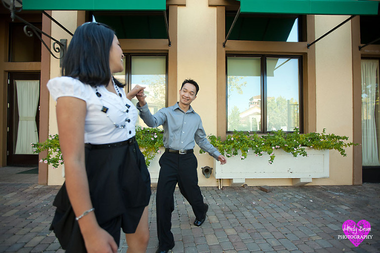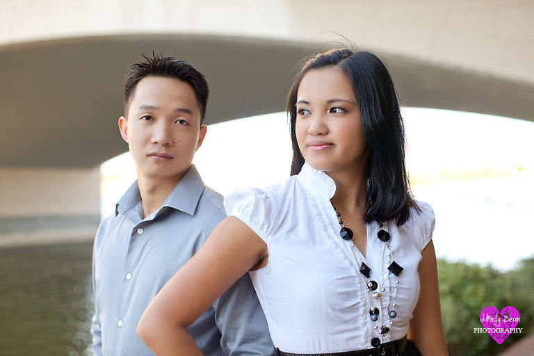 If you are like me today you are sitting in front of your computer and looking at the Black Friday Sales. I thought you might also love to see some fun engagement pictures! These two met by luck. Carmela was going to a military ball with another guy and Nhat was the driver. To make a long story short she ended up with Nhat and not the other guy. For their engagements went to Lake Las Vegas which by the way is always a great place if you aren’t sure where you want to go for a shoot. There is everything from the lake, to grass and cobble stone streets. You guys were so much fun to hang out with.