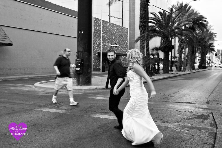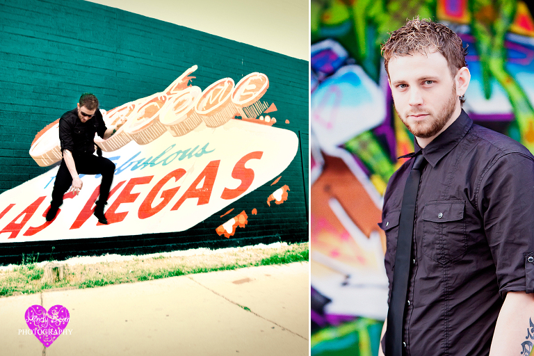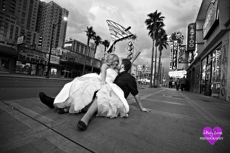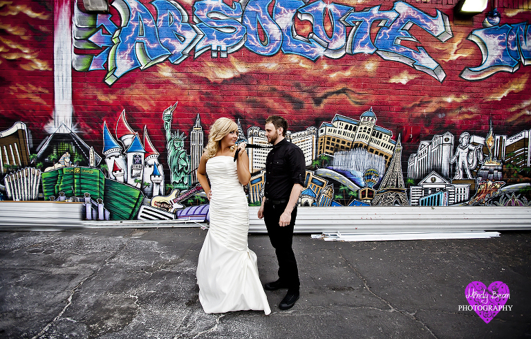 Jessica and Cody came to Las Vegas from Texas to get married in what she called “a little five minute wedding”. They were married at the Hollywood Chapel on Las Vegas Blvd. What they really envisioned was catching the fun and edgy side of Las Vegas with a bridal session right after the wedding. They weren’t looking for the cliche Welcome to Fabulous Las Vegas sign or the Bellagio Fountain. Those are great memories for some but not them. They wanted the “Old Style Vegas”. Normally this would call for the Neon Bone Yard Museum but since it is closed we had to get creative. We started out the shoot just south of Downtown Las Vegas at the Art District. The environment added to the excitement of the shoot and the painted walls gave them the color and edgy feel they were looking for. After that we went right to Fremont Street in Downtown Las Vegas and captured some of the lights of old vegas. Jessica and Cody were amazing and a photographers dream because they pushed me to think outside of the box. They were willing and ready for anything and that shows in their photographs. Also I cant believe she got her dress for $200.00 (WOW) loved it.